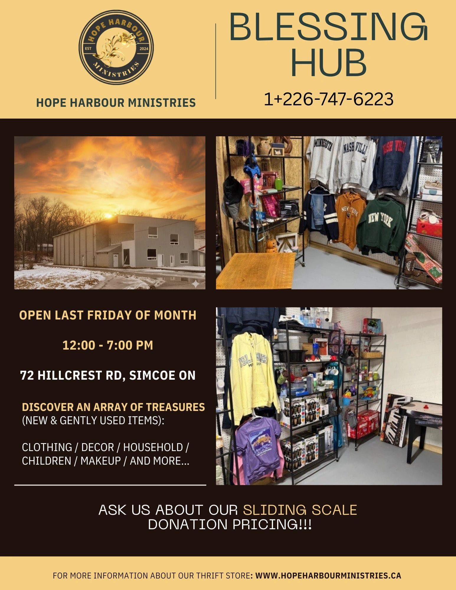 72 Hillcrest Rd., Simcoe ON Canada N3Y 0E3 1+226-747-6223 info@hopeharbourministries.ca